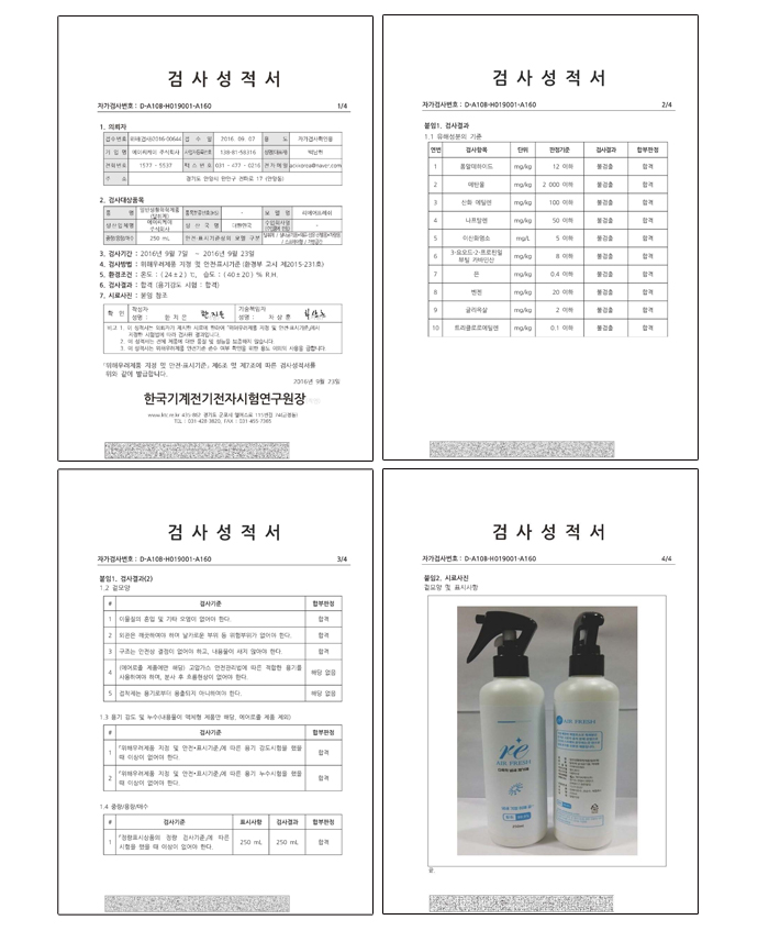 에이씨케이(주)의 모든 향제품은 시험성적을 거친 인증제품 입니다.