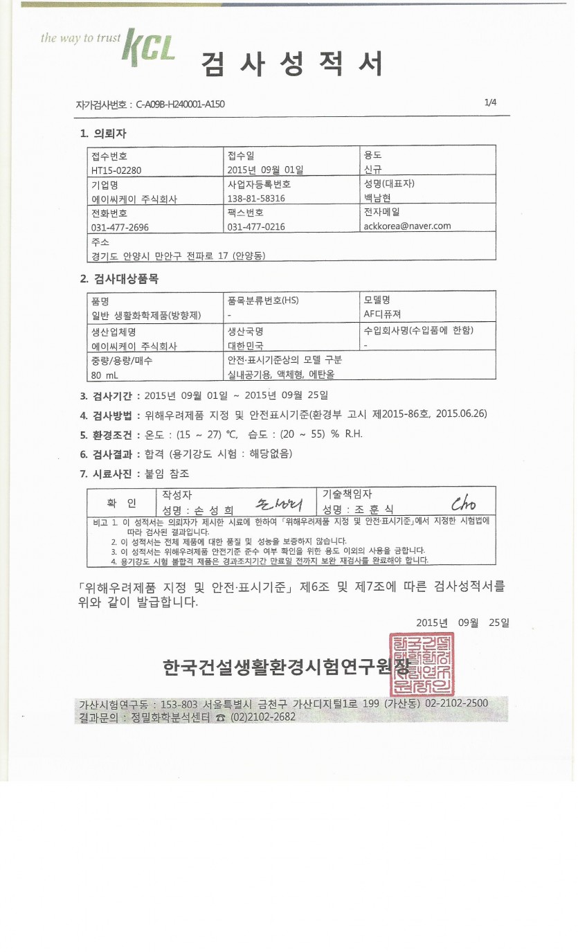 에이씨케이(주)에서 캔들,디퓨저 위해우려제품 지정 및 안전ㆍ표시기준
